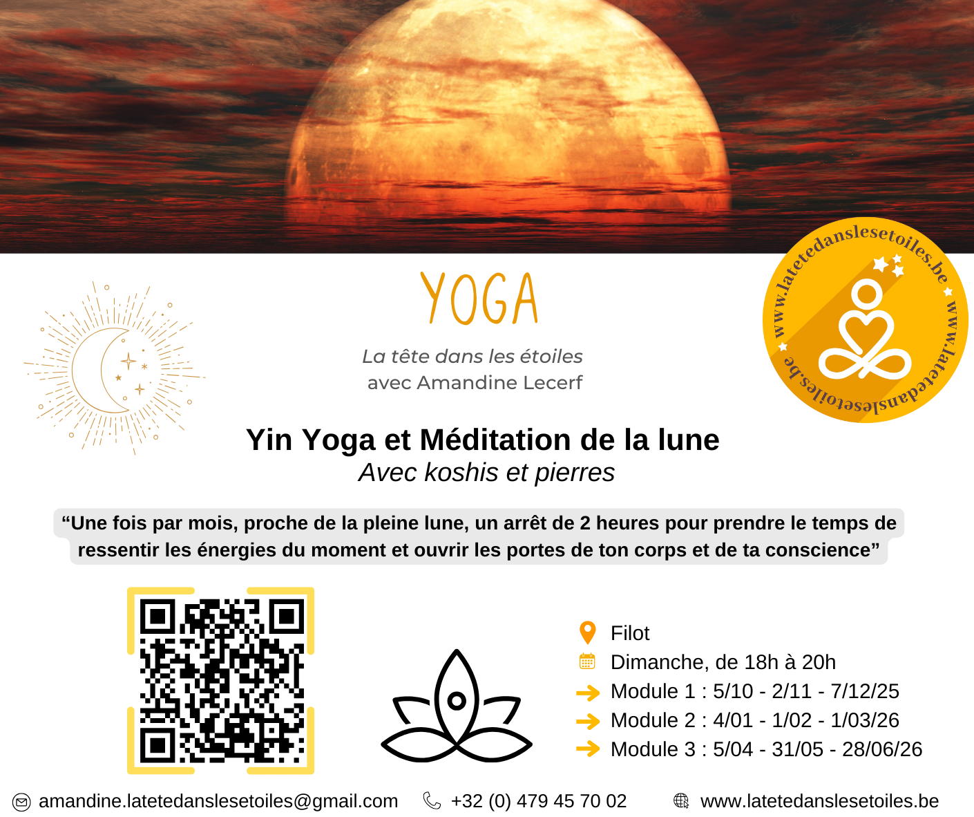 Yin de la lune: Je te propose une fois par mois, proche de la pleine lune un arret de 2 heures pour prendre le temps de ressentir les energies du moment et ouvrir les portes de ton corps et de ta conscience.