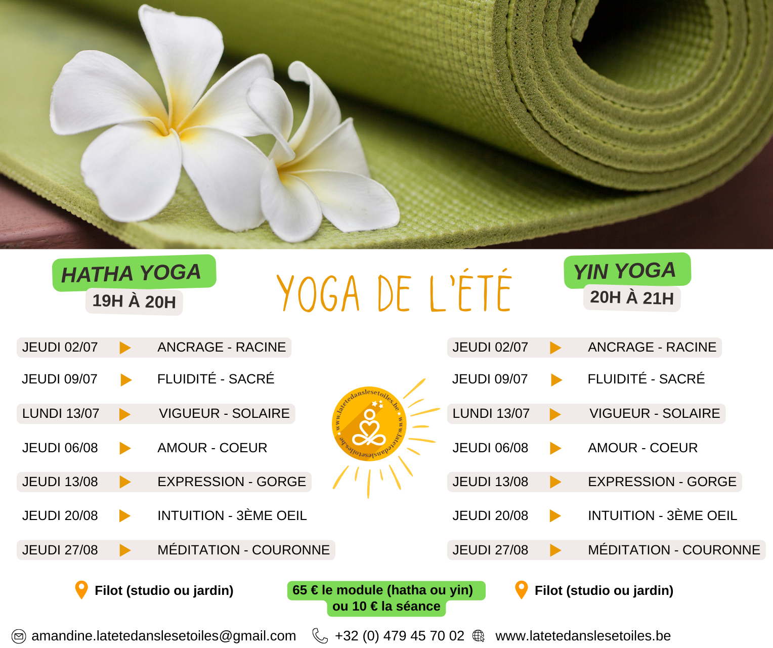 Yin de l'ete: Si possible dans le jardin si le temps le permet. Un moment pour te poser doucement et lentement. Si tu en as envie, une seance de hatha se donne juste avant:
